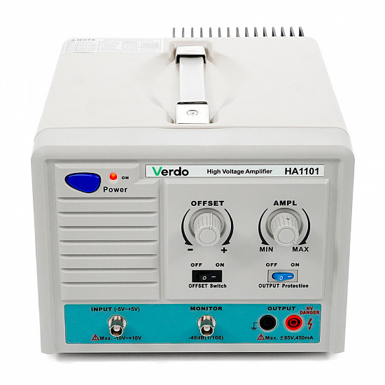 VERDO HA1101 представляет собой компактный высоковольтный усилитель, предназначенный для применения в испытательной и измерительной технике. Устройство отличается небольшими габаритами, малым весом и простотой в эксплуатации. Максимальное выходное напряжение составляет 170 В (размах).