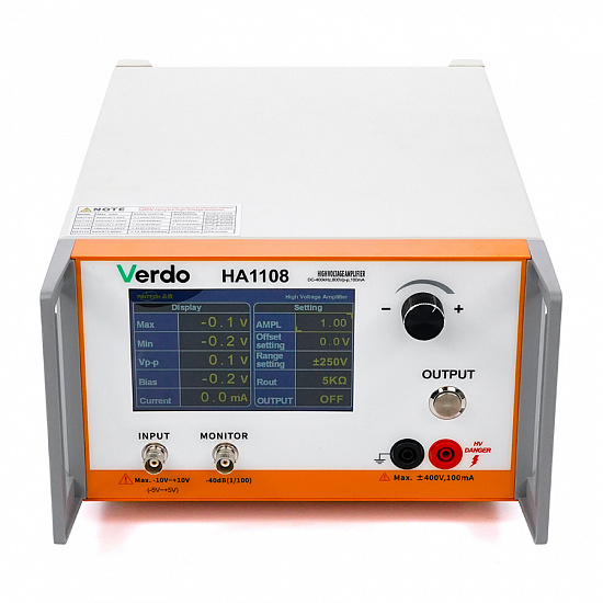 Усилитель VERDO HA1108 также оснащен дополнительными функциями защиты, что обеспечивает безопасность при работе с высоковольтными сигналами. Его удобный и практичный дизайн делает использование устройства более комфортным, что особенно важно в условиях лабораторной работы и научных экспериментов.