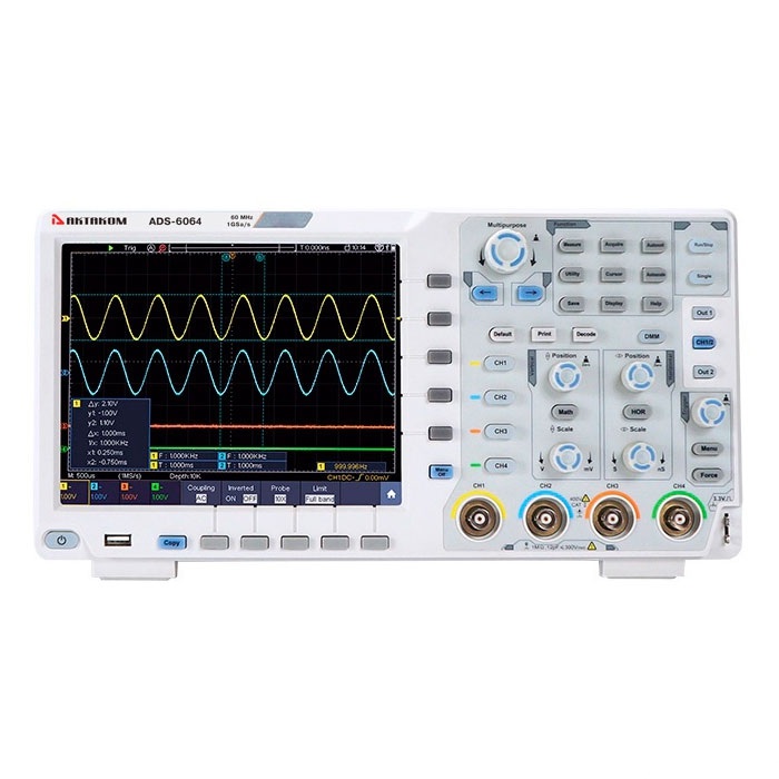 Осциллограф ADS-6064 имеет полосу пропускания до 60 МГц, а осциллограф ADS-6104 до 100 МГц, глубину записи до 40 миллионов точек и скорость захвата осциллограмм до 45000 осц/сек. Как и все осциллографы серии ADS-6000 функциональность новых моделей может быть расширена за счет установки дополнительных опций (при предварительном заказе).