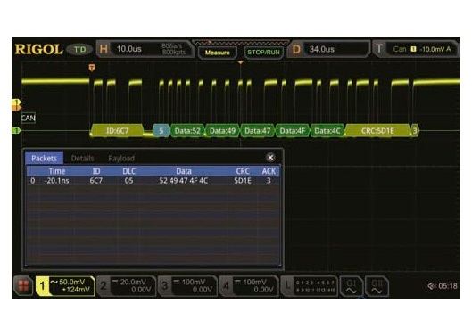 Опция анализа и запуска по шинам CAN и LIN MSO5000-AUTO для осциллографов Rigol серии MSO5000.