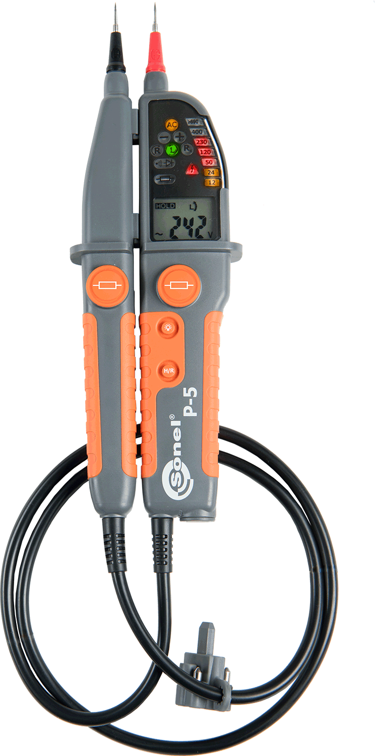 Измеритель напряжения P-5 предназначен для измерения напряжения постоянного/переменного тока, сопротивления, а также проверки исправности УЗО.