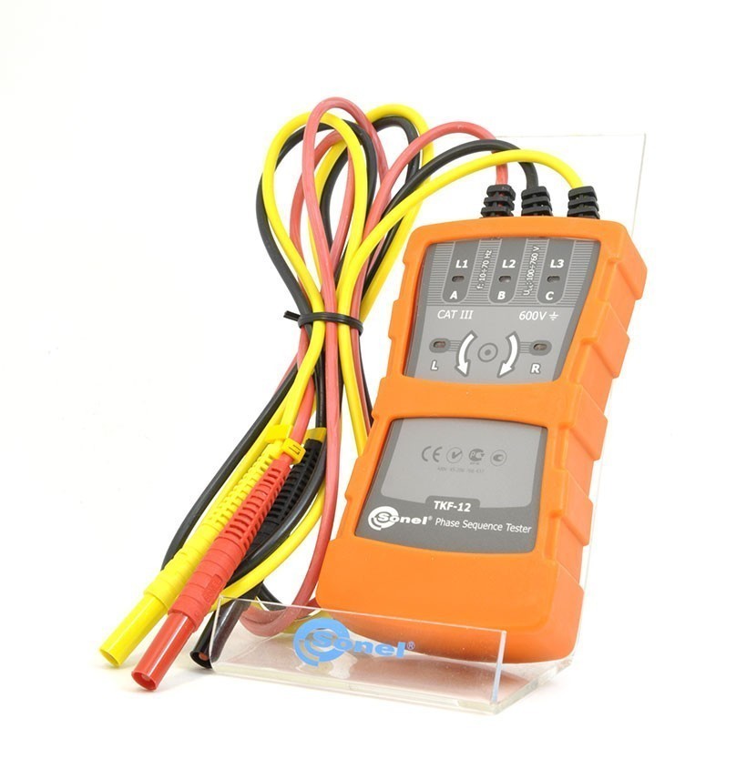 Указатель правильности чередования фаз TKF-12 является современным прибором, который характеризуется высоким качеством а также простотой использования. Предназначен для определения наличия напряжения трехфазных установок в диапазоне от 120 В до 690 В, а также индикации последовательности чередования фаз. Все результаты отражаются посредством высококонтрастных светодиодов.