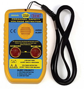 Указатель опасного напряжения 288 SVD: Предназначен для обеспечения безопасности персонала работающего в условиях возможного наличия источников опасного напряжения: пожарная охрана, спасатели и т. д.; Бесконтактное определение наличия переменного напряжения от 80 В до 44 кВ; Удаленность от детектируемого источника напряжения: от 5 см до 10 м; Индикация наличия напряжения: световой индикатор повышенной яркости и непрерывный звуковой сигнал; Встроенная схема контроля работоспособности; Простота в эксплуатации; Батарейное питание; Водонепроницаемый корпус позволяет использовать прибор внутри и вне помещений; Оборудован поясной клипсой и ремешком для ношения; Масса 146 г (с батареей).